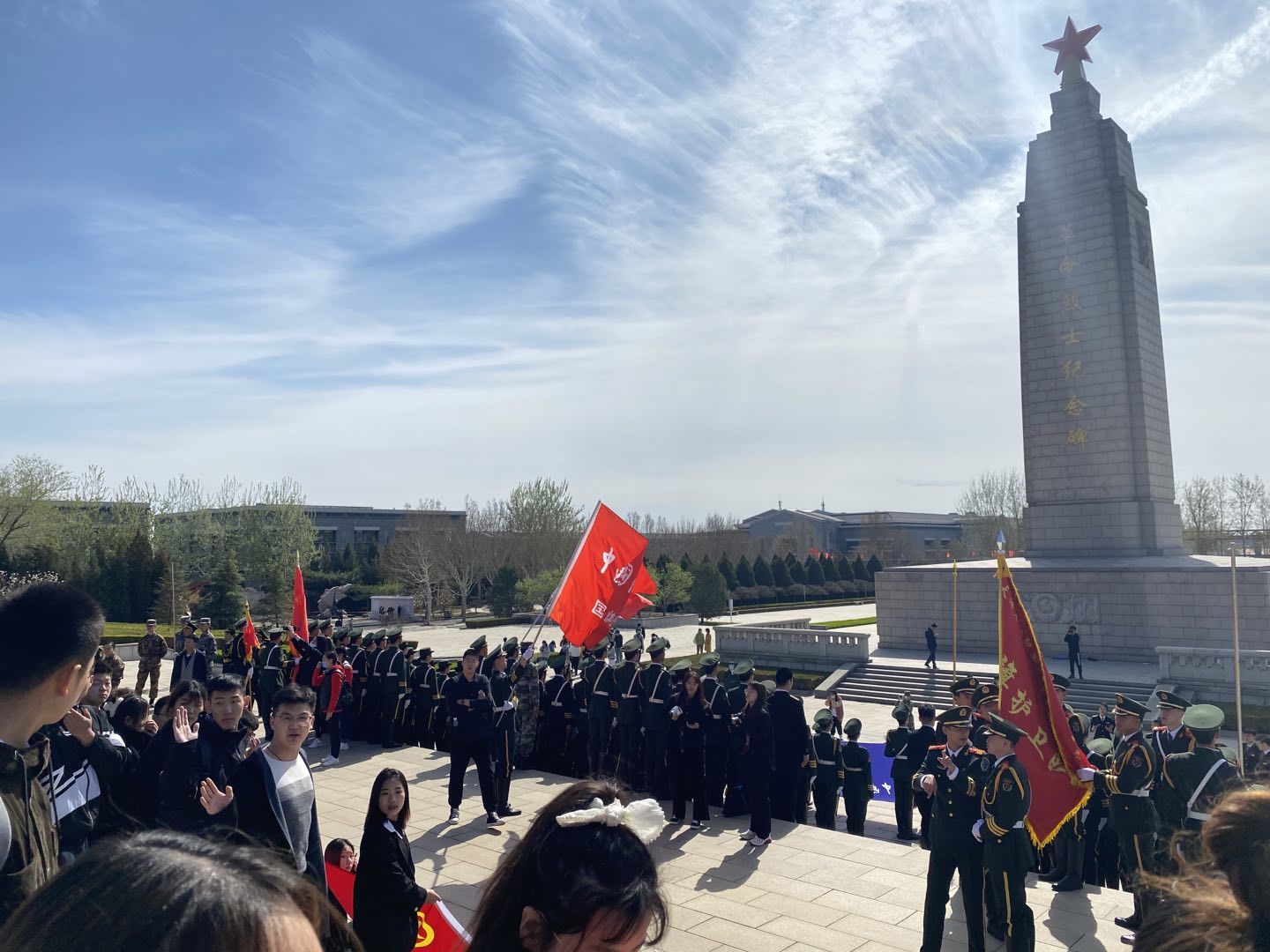 全体师生在革命烈士纪念碑前庄严宣誓,一句句震耳欲聋的誓言,表达着新一代青年必将继承先烈遗志,不断完善自我,为祖国的繁荣富强不懈奋斗。