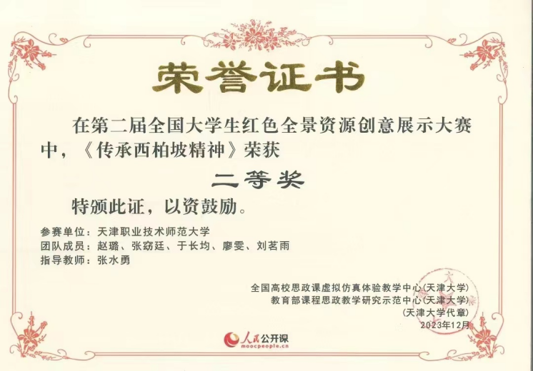 日前,第二届全国老员工红色全景资源创意展示大赛评选结果出炉,由公司马克思主义公司张水勇老师指导的304永利集团员工赵璐、张窈廷、于长均、廖雯和刘铭雨提交的参赛作品《传承西柏坡精神》,在比赛中荣获二等奖。