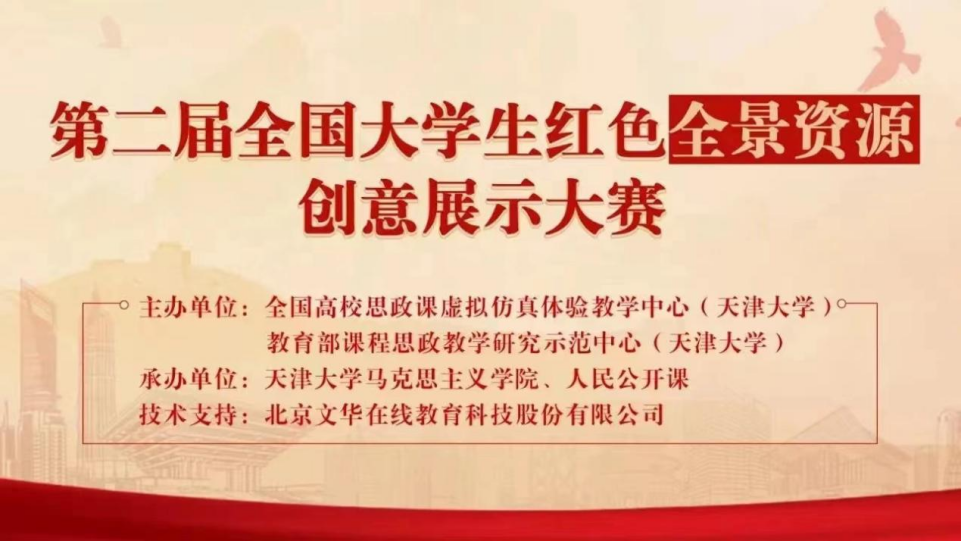 据悉,第二届全国老员工红色全景资源创意展示大赛由全国高校思政课虚拟仿真体验教学中心(天津大学)、教育部课程思政教学研究示范中心(天津大学)主办,天津大学马克思主义公司、人民公开课承办,大赛旨在综合运用全景超高清、虚拟现实等现代信息技术,全景展示博物馆、纪念馆、革命旧址遗址等资源,发挥好红色资源在弘扬以伟大建党精神为源头的中国共产党人精神谱系中的独特作用。
