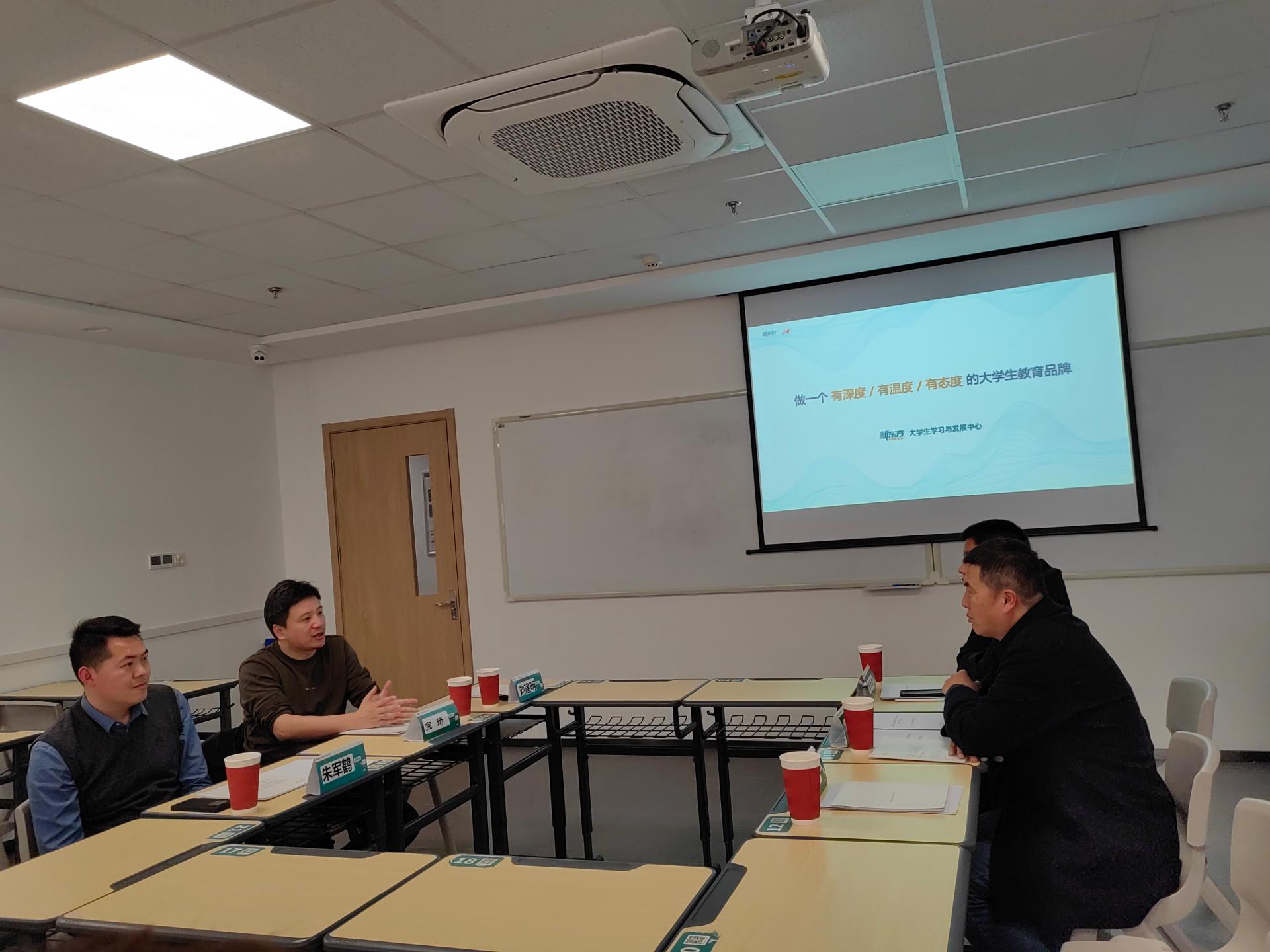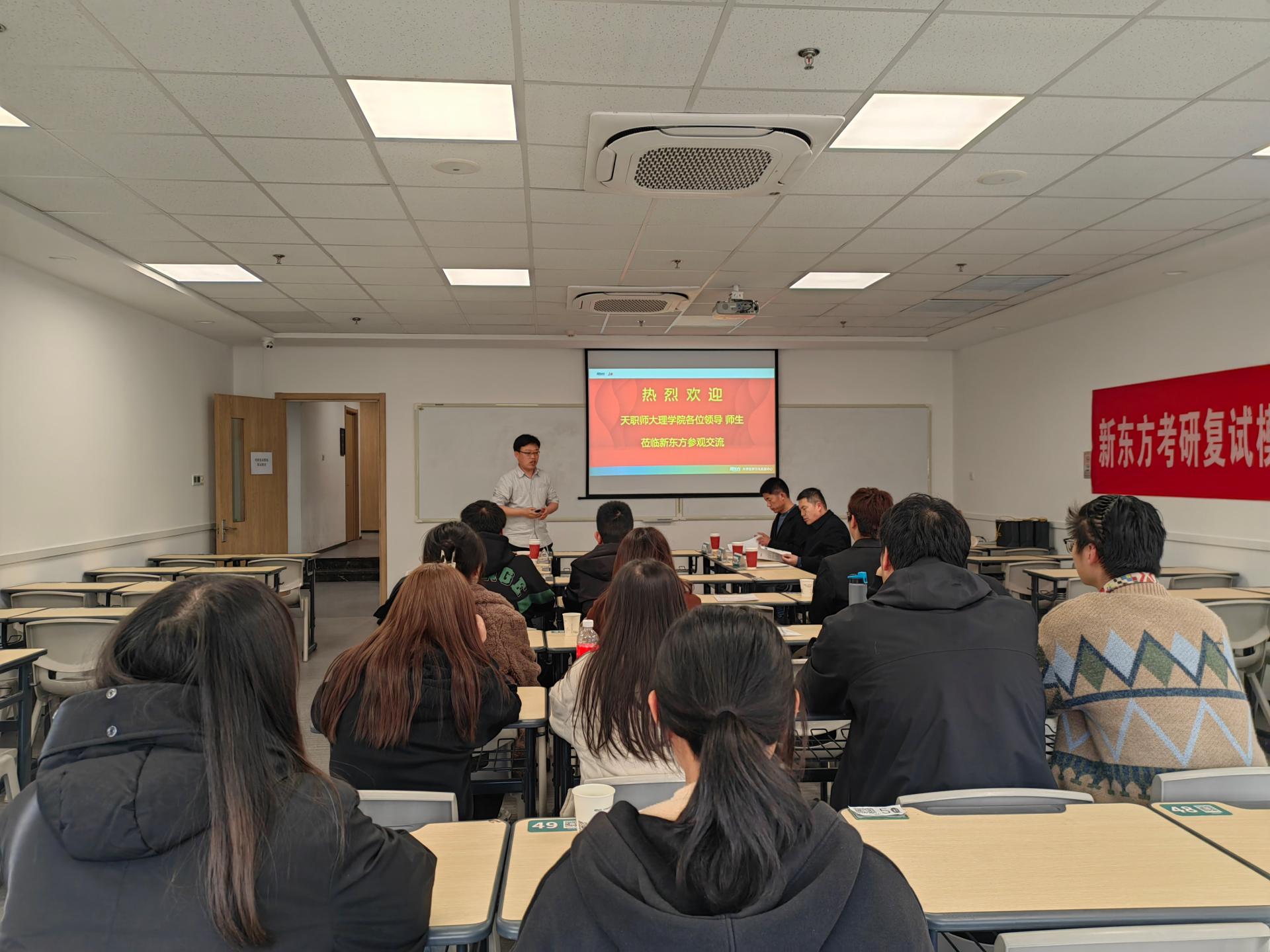 刘建明带领大家参观了天津新东方南开校区,详细介绍了新东方的企业定位、发展历程、企业文化等情况。宗琦结合企业愿景对公司现状、未来发展计划和路径等情况进行详细介绍,并结合公司专业情况、企业社会责任等方面提出了针对性的招聘需求。孙福芹介绍了公司的专业设置、人才培养等情况,并希望通过此次活动进一步加强校企合作,不断拓展就业渠道,实现校企协同育人。与会人员从考研公益活动、实践实习、就业等方面进行了深入交流,并对今后建立校企协同育人长效机制达成了初步合作意向。