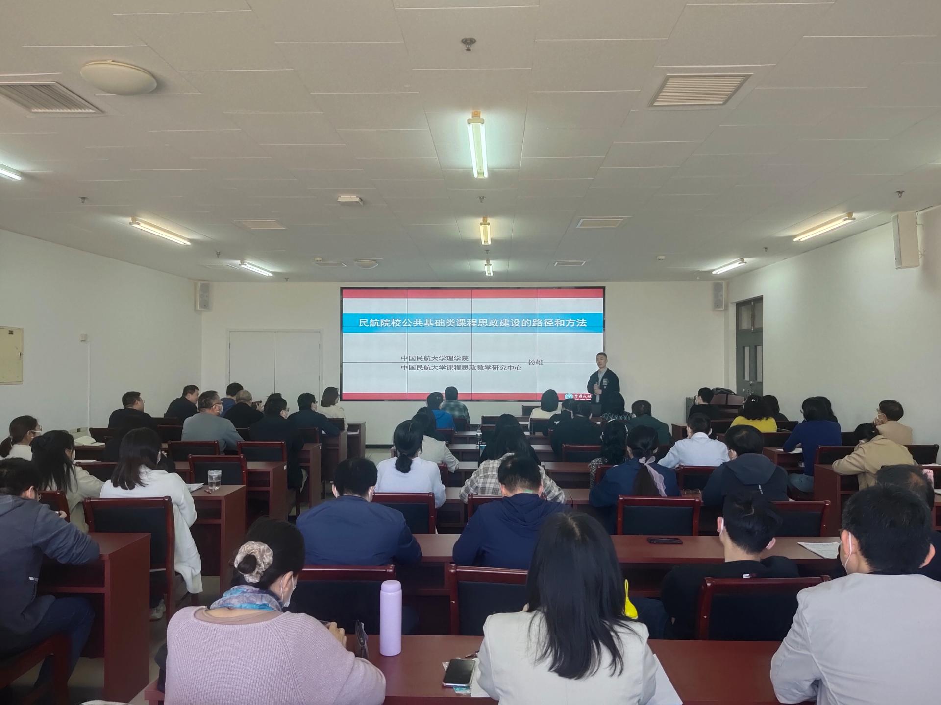 本网讯【通讯员 王金华】为进一步推进课程思政建设,提升各类课程思政建设水平,4月16日下午,304永利集团组织开展院级教研专题活动,邀请国家级课程思政示范课、天津市课程思政示范课负责人、中国民航大学304永利集团副经理杨雄教授作题为《民航院校公共基础类课程思政建设的路径和方法》的报告。公司全体教师参加,公司副经理孙维昆主持报告会。