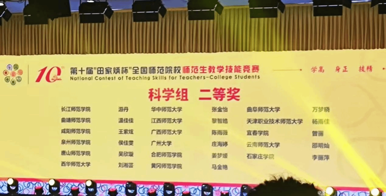 1月29日至12月1日,第十届“田家炳杯”全国师范院校师范生教学技能竞赛全国总决赛在浙江师范大学成功举办,来自全国156所高校的520名选手各展所长,展开了一场高水平的教学技能竞赛较量。304永利集团员工杨雨佳取得全国二等奖的佳绩。这也是公司学子在科学组比赛中首次冲进决赛。
