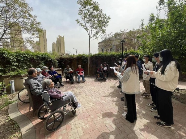 志愿者们乘车抵达养老院后,养老院负责人马燕热情接待,向志愿者们详细介绍了养老院的建设、运行情况等,并对与老人相处的注意事项做了着重说明。志愿者们在其引导下,安全有序地搀扶老人们到达养老院活动中心,开展业余活动。活动过程中,志愿者们充分发挥主观能动性,进行了闲聊破冰、红歌大合唱、舞蹈学习等愉快轻松的活动,老人们也在交谈活动中展露笑颜,大家共同度过了轻松愉快的周末。活动结束后,志愿者一一将老人送回房间,与他们告别,约定下次再见。