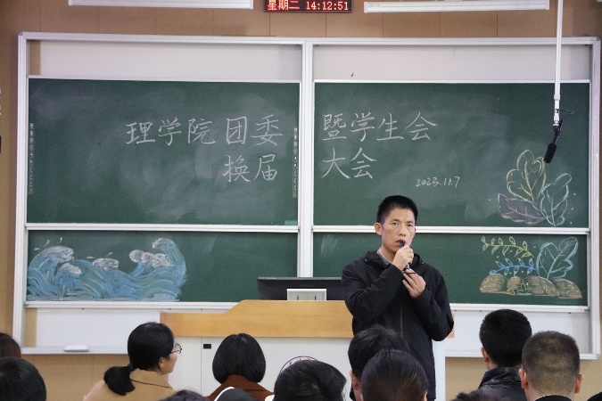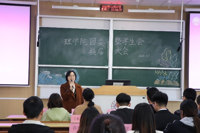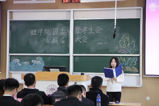 大会第三项议程,团委书记矫海燕宣读团委第十届成员名单。对团委一路走来的辛苦历程进行了简单回顾,并对团委部门成员的工作表示认可。希望新一届团委全体成员带着服务同学的热情与对待工作的认真,再创佳绩。