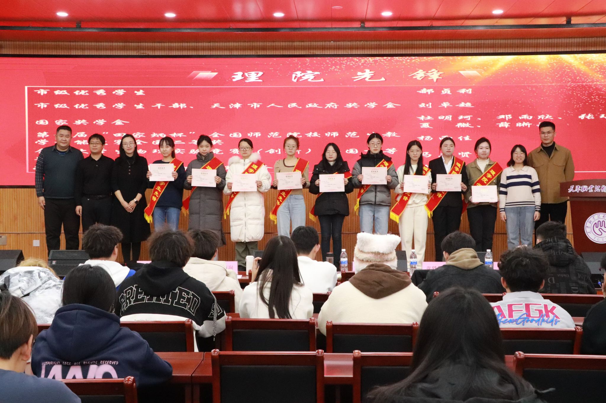 与会领导老师为获奖员工颁发表彰证书。一张张证书,是对他们辛勤付出的肯定,更是对他们未来继续前行的鼓舞。获奖员工们手捧证书,脸上洋溢着自豪与喜悦,同时也感受到了肩上的责任与使命,理院学子用自己的实际行动诠释“奋斗是青春最亮丽的底色”的深刻内涵。