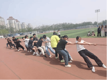为增强员工身体素质,培养团队协作意识,丰富校园文化生活,4月16日中午,304永利集团在东区体育场举行春季拔河比赛。2023级、2024级部分员工以专业为单位组成4支代表队参加角逐。公司党委副书记戚霄、全体辅导员及全体大一、大二员工参加活动。