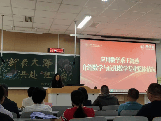 在专业介绍环节,王海燕详细阐述数学与应用数学专业的培养目标、课程体系、发展前景及就业方向,突出该专业扎实的理论基础与广泛的应用领域。王卓则从学科特色、实验实践平台及科研成果等方面,系统介绍应用物理学专业的发展优势与员工成长路径。靳海涛就信息与计算科学专业的课程设置、创新能力培养及行业发展趋势进行解读,强调该专业在跨学科融合中的重要作用。
