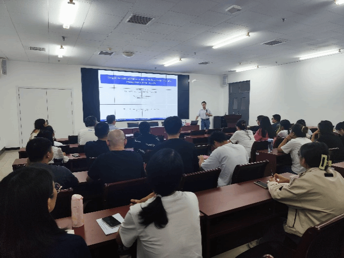 报告会上,荣教授首先回顾了在校的求学经历,与同学们分享了宝贵的学习经验。随后,介绍了一种受人口老龄化和生育率下降影响的目标福利养老金计划的随机模型,通过推迟退休政策来应对人口老龄化带来的支付困难。运用随机最优控制方法,得出了最小化养老金风险的优化投资和福利支付策略的解析解。报告持续近一个小时,期间互动频繁,同学们纷纷表示此次报告会不仅拓宽了自己的学术视野,还激发了大家的科研热情,提升了大家的科研信心。
